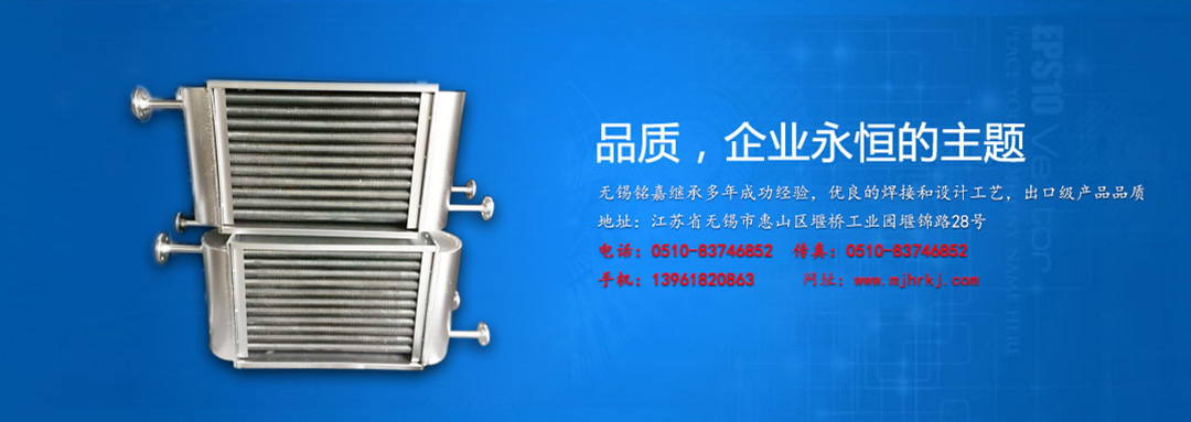 無錫銘嘉換熱科技有限公司是生產散熱器的專業工廠。 產品有:高溫水或蒸汽散熱器、高溫導熱油散熱器表面空氣冷卻器、油冷卻器鋁制串片式暖氣片、空氣冷卻器、翅片管換熱器